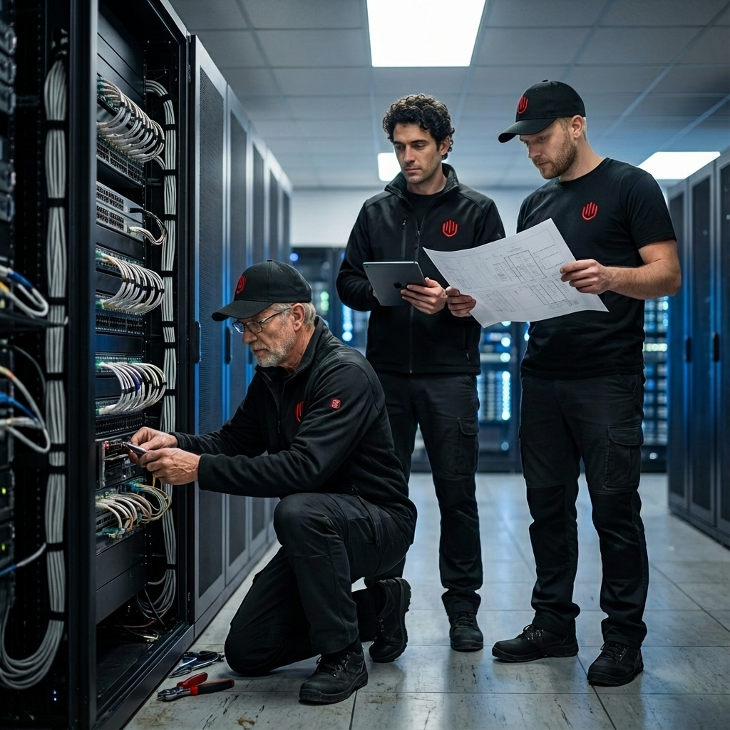 Мы умеем работать в режиме конвейера. Мы разрабатываем типовые решения («типовой филиал», «типовой банкомат»), пишем инструкции для местных инженеров и контролируем их работу удаленно. Это позволяет запускать по 10-20 объектов в день с гарантированным качеством и предсказуемым результатом.